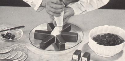 Tunken der Eisschnitte in Kuvertüre muß flott